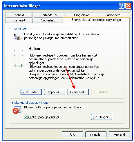 Klik på knappen [Avanceret], og du får så dette billede frem: